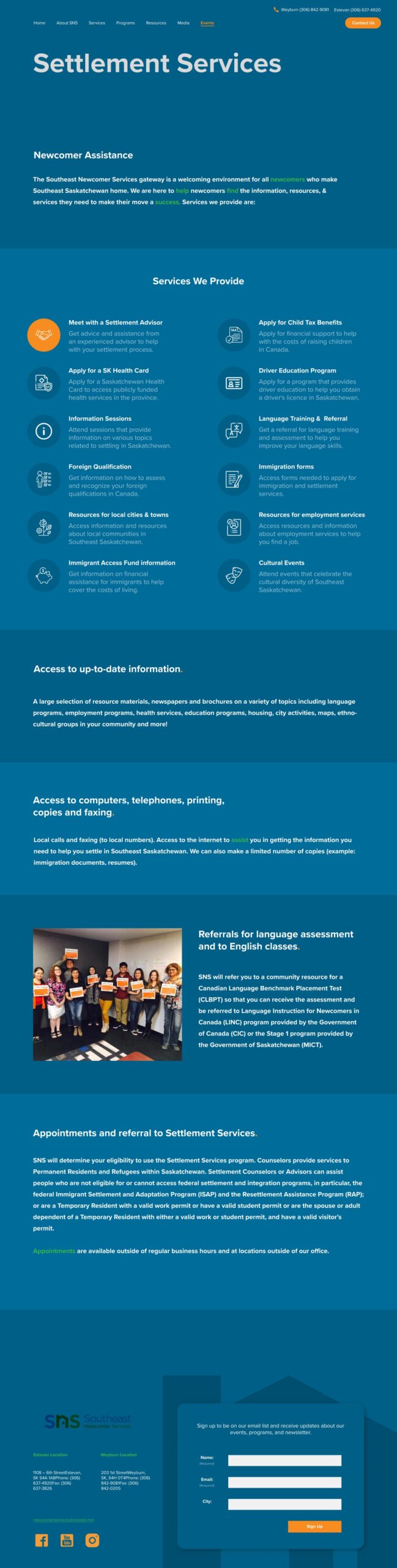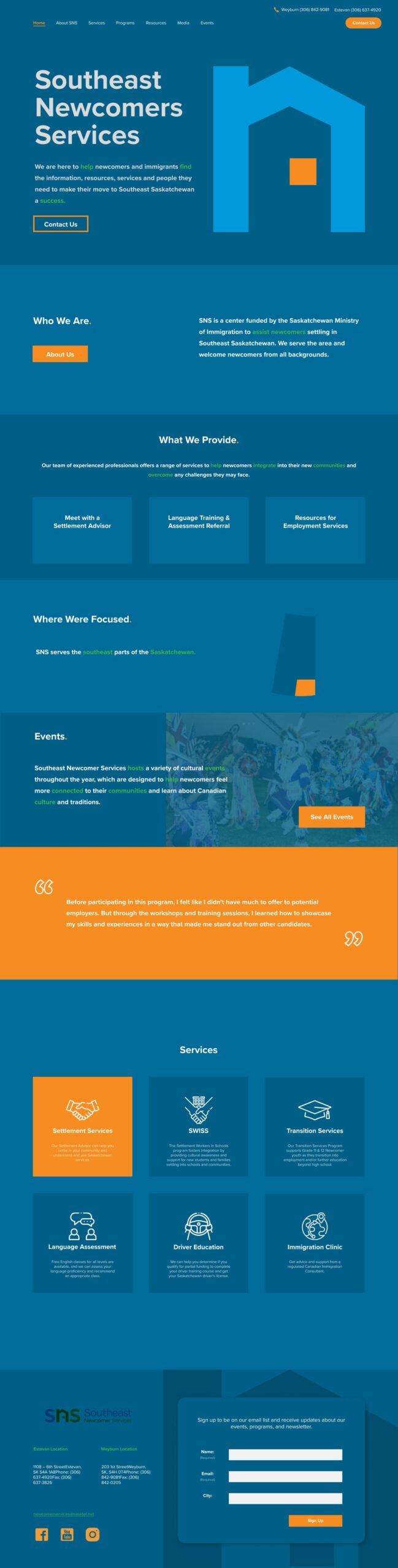 The project involved a comprehensive redesign of the Southeast Newcomer Services website, aimed at enhancing user experience, improving accessibility, and modernizing the overall look and feel.